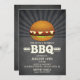 Modern chalkboard BBQ invitation featuring radial black stripes with a large hamburger set on a stylish & chic chalkboard and has a matching popular blackboard back for an extra special touch. Perfect for an summer barbeque, memorial day party, 4th of July cookout, labour day party, family reunion or a sumer pool & barbecue party.