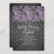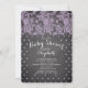 Modern chalkboard baby shower invitation for a girls baby shower. Our Modern baby shower invitation with a vintage twist features beautiful lavender purple lace with dainty polka dots set on a contemporary black chalk board background. Flip our cute invitation over to view a matching blackboard background for an extra special touch. Visit our shop to view this invite in pink, blue & green!