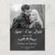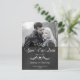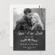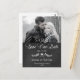 Chalkboard images are popular, and this one is especially elegant. Your photograph (black and white or colour) is at the top, with pretty script text that says "Save Our Date" directly below it. Three text fields are available for you to customise, with a heart and laurel leaf swirl image as a divider. The back of the card has plenty of room for your custom text in black and grey.