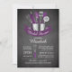 Modern stock the kitchen bridal shower invitation featuring a mixing bowl filled with kitchen tools accented with a modern purple banner and set on a contemporary black chalkboard background. Visit our shop to view our stylish utensil wedding shower invite in a variety of popular wedding colours.