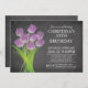Start your birthday party off right with our pretty bouquet of tulips party invitation featuring a contemporary bunch of purple tulip flowers set on a chalkboard background. Flip our floral flower birthday party for adults over to find a matching chalkboard back for an extra special touch! Available in our shop in a variety of tulip color choices. Perfect choice for a 21st birthday, 30th birthday, 40th birthday, 50th birthday.