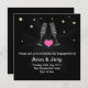 A beautiful plain invitation for a engagement party. The modern clean design contains two champagne glasses with bubbles and a heart.