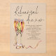 Modern Champagne Script Wedding Rehearsal Dinner is in a set handwritten style with the details beneath and artsy champagne glasses to the left hand side. Easily personalise the rest of the text to your own details and replace the sample photo on the back with your own or you can delete the sample image via Edit further.