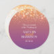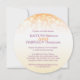 Beautiful graphic champagne bubbles effect wedding invitation in purple and golden orange hues. A simple contemporary, wedding invitation featuring a bubble effect graphic art. Perfect for a modern bubbles and champagne wedding. Edit this invitation with your own words. Design and graphics by Sarah Trett.