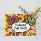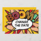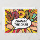 Personalise with your names and details to announce the change of date of your special event. Comic book pop art themed modern, fun retro design, perfect for weddings, bridal showers, baby showers, baptisms, engagement parties, anniversary celebrations, graduations, birthday party and other special events throughout the year! A cool, trendy and fun design that puts the wham zap pow into your day. Designed by Thisisnotme©