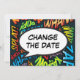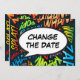 Personalise with your names and details to announce the change of date of your special event. Comic book pop art themed modern, fun retro design, perfect for weddings, bridal showers, baby showers, baptisms, engagement parties, anniversary celebrations, graduations, birthday party and other special events throughout the year! A cool, trendy and fun design that puts the wham zap pow into your day. Designed by Thisisnotme©