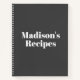 Modern Custom Name text or monogram stylish elegant Recipe Book or Notebook.
