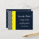 Modern Chevron Navy Blue Yellow Save Date Postcard. Customise for any event. Matching items available.