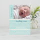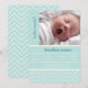 Customise this modern and chic baby birth announcement card with your sweet baby's photo and details. The card features a blue chevron pattern.