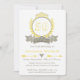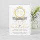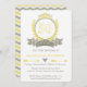 An elegant, modern style birthday invitation that's easy to customise with the birthday party recipient's name and the party specifics, features a grey and yellow scroll and leaves design with arrows and a little grey heart. The back of this pretty customisable birthday invitation features a yellow, white, and grey chevron stripe design. You can easily change the age on this birthday invitation to whatever year you want it to read!