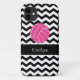 Modern and trendy chevron stripes iPhone case features black and white chevron stripes, a pink volleyball and a black accent border frame for your name, initial or other text. Show your personality with this fun and trendy iPhone case. Makes a great gift for all occasions. Click the "Customise it!" button to change the text size, text colour, font style and more!