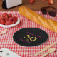 Simple chic pink and gold modern typography script on a black background announces that you are 50 and Fabulous on these minimalist modern paper plates. Celebrate this wonderful milestone fifty birthday with elegance and grace. Add your name to this stylish, elegant, minimalist, 50th birthday party typography in Gold and pink announcing that you are fifty and proud of it