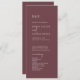 This minimalist chic autumn burgundy flat wedding program is perfect for a simple wedding. The moody boho design features rustic unique and stylish bohemian typography in a dark marsala maroon red wine colour.