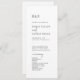 This minimalist chic black and white flat wedding program is perfect for a simple wedding. The minimalist boho design features rustic unique and stylish bohemian typography in minimal clean black and white. Include the name of the bride and groom, the wedding date and location, thank you message, order of service, bridal party and an optional "in loving memory" memorial.