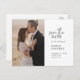 This modern chic black and white QR code save the date postcard is perfect for a simple wedding. The minimalist boho design features rustic unique and stylish bohemian typography in minimal clean black and white. Personalise the front of the postcard with a photo, your names, date and wedding location. Include a QR code link to your wedding website for more info on the back of the postcard.