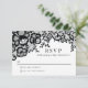 Modern Chic Black Lace Formal Wedding RSVP Card | Chic Black Lace Wedding Stationery Suite | Elegant black and white wedding response card with black flowers and leaves in a chic lace style. Sophisticated formal font style, with classic chic typography. Trendy wedding RSVP card. ***PLEASE NOTE: This card is not made of real lace. If you change the font or size of the font, it may alter how your stationery prints. It will print the way you see it on your monitor. I will not see your card once you order it, and Zazzle will NOT edit anything (typos, alignment, etc.).