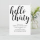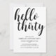 Celebrate your 30th birthday in style with this modern birthday party invitation. With a white background, the black script typography reads "Hello thirty". Underneath, in modern black typography, you can easily customise with your details.