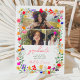 Add a touch of bohemian elegance to your graduation party with our Modern Chic Boho Bright Elegant Colourful wild flowers Announcement. Featuring pink, red, green, and purple hues botanical flowers inspired by wildflowers and watercolor rustic gardens with subtle greenery and modern boho script typography. Add 3 photos to celebrate the graduate.
