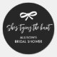 Modern Chic Bow Ribbon Bridal Shower Black White Classic Round Sticker