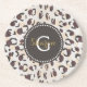 Modern chic brown cheetah print pattern monogram coaster