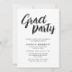 Modern Chic Brush Script Black & White Grad Party Invitation