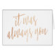 Simple and pretty calligraphy style "It was always you" wedding day card from bride to groom or groom to bride.