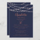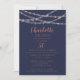 A custom printed 50th birthday celebration invitiation, with an easy to use template for customization. This modern chic design features glowing pink string lights on a navy background. With the first name and age in a calligraphy style font. Click on the customize button and use design tools to change the font style and color, to make an even more unique invitation.