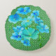 Modern Chic Green Pattern Blue Lilies Throw Pillow