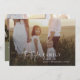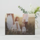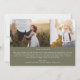 This modern chic green photo overlay family news holiday card is the perfect stylish holiday greeting. This simple boho design features classic sophisticated calligraphy in rustic olive green and white. Personalise the front of the card with a photo, your family name and the year. Include 2 additional photos, and an optional year in review or family newsletter on the back of the card.