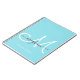 Modern, trendy girly light blue and white custom personalised monogrammed spiral notebook. This simple elegant design features a cursive hand lettering name with swashes in grey and a huge hand-writing monogram script in white on light blue, aqua or light turquoise background. This feminine, pretty notebook is a perfect gift idea for business, professional, school, birthday party, wedding and any party or occasion for someone that like girly and modern styles. If you need help or matching item please contact to designer.