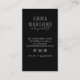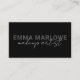 A modern edgy makeup artist black business card with a trendy modern script title. Social media icons on the back (you may keep them or delete them as needed). Perfect to customise for makeup artist OR hair stylist.