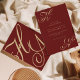 Modern Chic Monogram Burgundy and Gold Wedding Invitation
