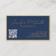 Modern Chic Navy Blue Gold Hand Written QR Code Business Card