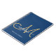 Modern, trendy girly navy blue and gold custom personalised monogrammed spiral notebook. This simple elegant design features a cursive hand lettering name with swashes in white and a huge hand-writing monogram script in gold on dark navy blue background. This feminine, pretty notebook is a perfect gift idea for business, professional, school, birthday party, wedding and any party or occasion for someone that like girly and modern styles. If you need help or matching item please contact to designer.