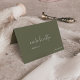 These modern chic olive green menu place cards are perfect for a simple wedding. The woodsy boho design features rustic unique and stylish bohemian typography in a minimal woodland forest green colour.