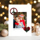 This modern holiday photo card features one vertical photo on a classic white background with modern peace sign and heart in classic red tartan. On the reverse side is the same white background, to which you can add another photo or additional text by selecting the "edit using design tool" option. **ALL colours including symbols, background, and text are customisable using the design tool.
