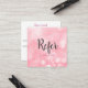 A modern chic pink referral card featuring pretty blush pink bokeh as a background with elegant typography. Perfect for a wide range of professions including; stylists, beauticians, hair and beauty consultants, spas, makeup artists to name a few! Personalise by adding your contact details on the reverse with your discount offer. Designed by Thisisnotme©