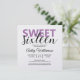 A chic modern look sweet 16 birthday party invitation with sweet sixteen in lavender purple and black. You can easily add your own personal details to this elegant sweet sixteen birthday party invitation. The back of the card features a stylish purple and white stripes pattern. If you need any help or matching products, please contact us through our store.