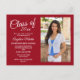 Modern and chic, simple red graduation photo party invitation for girls, designed with an elegant script font. Customisation allows you to customise it for Class of 2022 or any year you choose. These party invitations are perfect for high school or college graduation. Contact us for help with customisation or to request matching or coordinating products.