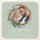 Modern chic script foliage wreath photo elegant wedding save the date card. Modern minimal stylish design. All colours can be customised.