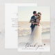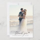 A modern wedding thank you photo card design with elegant lettering and a custom thank you message to your guests at the back. You can freely customise the image and other details.