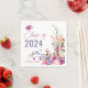 Class of 2024! Elegant modern spring summer flowers illustration with pretty wild flower and brush script graduation napkins with a modern calligraphy typography with red, purple, pink , terracotta flowers on white background