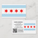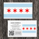 Business Cards: Modern Chicago business card featuring flag of Chicago, Illinois on one side and your details together with scannable QR Code, small Chicago flag on the other side. Easily customise link in QR Code for your website or mobile number, personalise name, address details or change flag on the side for your company logo, personal photo or any other image. Make it your business or just card for moving house.