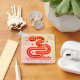 Modern illustration of a snake in red colours (model n°4). Design on basic square keychain + 2025 + greeting in Chinese and English + "Year of the Snake". Matching greeting card, holiday postcard, sticker (and more soon)... Perfect for Chinese New Year of The Snake 2025 or birthday (people born in Snake Year).