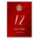 This simple modern Chinese wedding table number card features a gold double happiness symbol on a shimmering red background. Matching Chinese wedding products available.