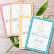 These simple but beautiful baptism invitations are a perfect way to invite your loved ones to celebrate the baptism of your new child. They feature script typography, beautiful soft yellow tones, and gold-tone details in the cross and text of the word 'Baptism'. This design is customisable and ready for your details. Celebrate a momentous occasion with our minimalist baptism stationery and party supplies, where simplicity meets elegance. Imagine solid colour backgrounds that exude sophistication, a blank canvas for your precious memories. Available in different colours, these stationery items allow you to mix and match effortlessly, creating a personalised setting that reflects your unique style and the purity of the occasion. Each piece is thoughtfully designed to enhance the sacred atmosphere, with a focus on quality and aesthetic appeal. Whether you opt for soft pastels or bold hues, the minimal design ensures your message and celebration take centre stage. Transform your event into a serene oasis of grace with these impeccably crafted pieces. Perfect for commemorating this special life milestone, our collection makes planning your baptism both seamless and enchanting.