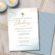 Modern Christian Blue Gold Cross Boy Christening Invitation