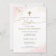 Modern Christian Pink Gold Cross Girl Baptism Invitation