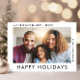 Modern Christmas folded greeting card that features your photo on the front and "Happy Holidays," "May Your Days Be Merry + Bright" and your name in simple typography. On the inside, add two additional photos and a personalised greeting.