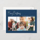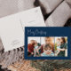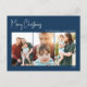 Modern Christmas | Blue Three-Photo Holiday Postcard